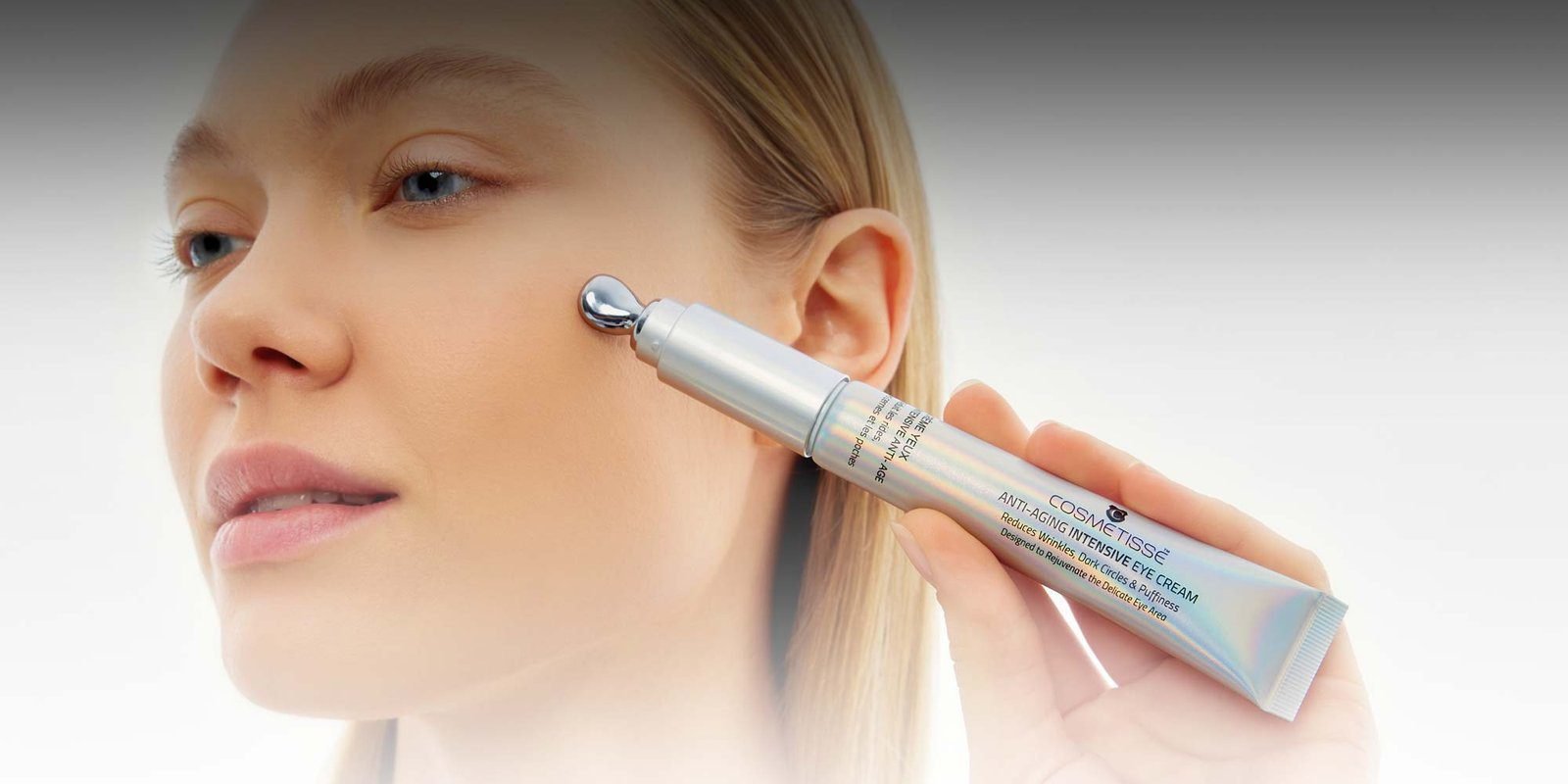 Cosmetisse Anti-Aging Intensive Eye Cream, Firming, Lifting & Hydrating Formula with Snail Secretion, Shea Butter & Vitamin E, Reduces Wrinkles, Dark Circles & Puffiness, 30ml with Vibration Applicator. A luxurious eye cream that firms, lifts, and hydrates while reducing the appearance of wrinkles, dark circles, and puffiness, featuring a unique vibration metal applicator for enhanced absorption and circulation.